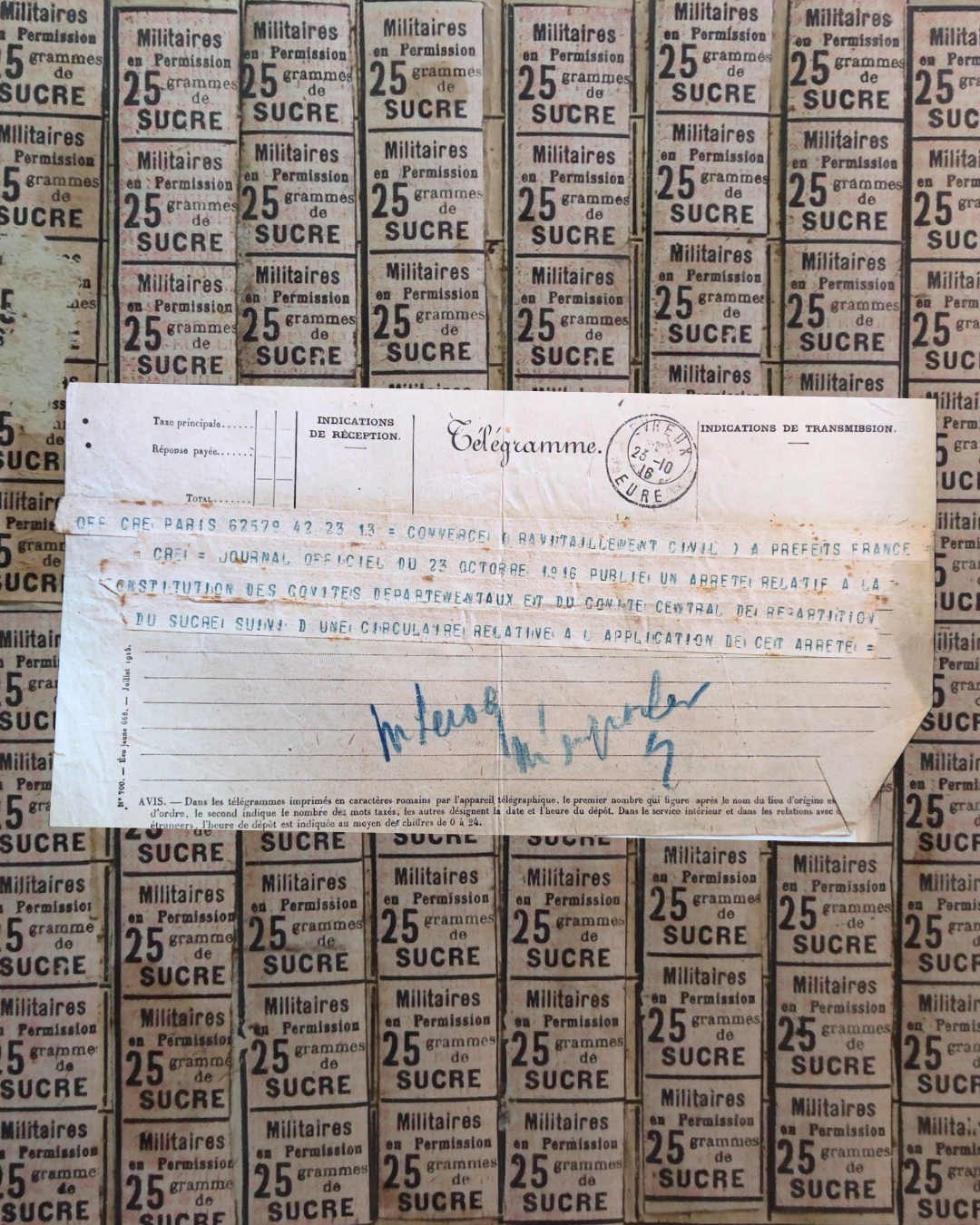 👀 Le télégramme provenant du commissariat de police de Pont-Audemer adressé au préfet à Évreux est une constatation observée par les pâtissiers de sa ville. Ils auraient remarqué que des brioches étaient vendues à Bernay et à Évreux, il demande donc de préciser si la vente de brioches est comprise - ou non - dans l'interdiction du décret du 8 avril. La réponse indique que les brioches sont belles et bien comprises dans l'interdiction, mais que le pâté en croute "reste autorisé à la condition d'être fait avec de la farine réglementaire"…