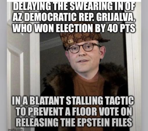 #ProudBlue #ResistanceUnited #Pinks Mikey knows that stalling the swearing in of our Dem Rep will not stop the inevitable release of the Epstein files. Repubs would be furious if Dems did this! โRefusing to seat a member for leverage is a gun aimed at the fundamentals of representative democracy.โ
