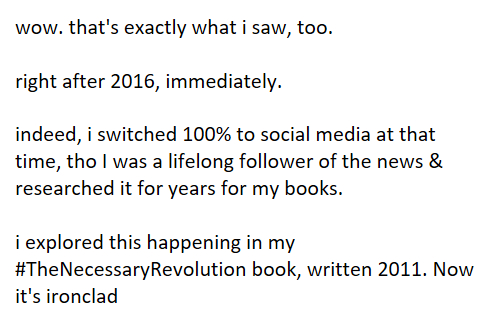 #TheNecessaryRevolution (2011). Now it's ironclad. A total alternate reality being created by the MSM