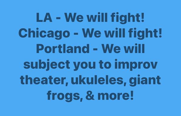 #ProudBlue #Pinks #ResistanceUnited Did anyone have some guy in an inflatable frog suit leading the resistance on their bingo card?