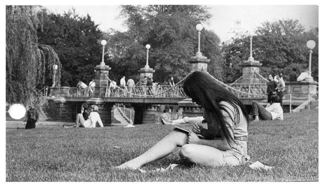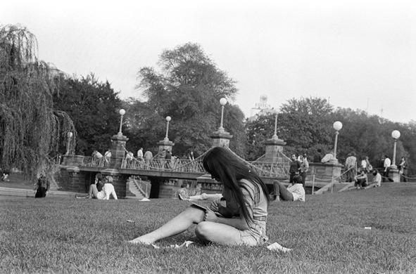 #photography #film #blackandwhite #bw #blackandwhite #boston #massachusetts #publicgarden #park #candid #people #youngpeople #barefoot #footbridge #lagoon #1970s