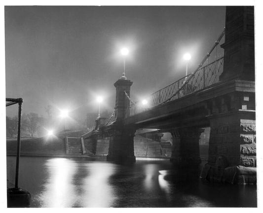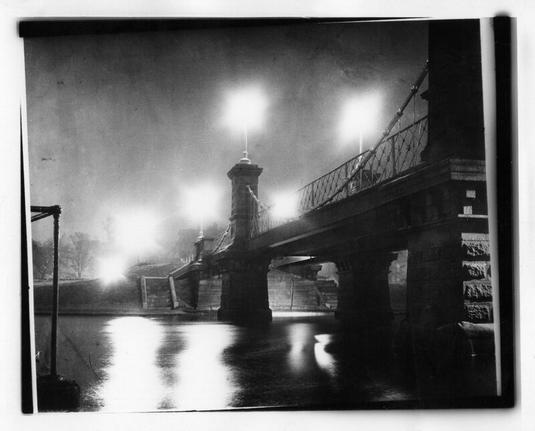 #photography #film #blackandwhite #bw #blackandwhite #boston #massachusetts #publicgarden #bridge #footbridge #lagoon #night #lights #1950s