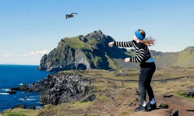 A puffin chick, called a "puffling," ventures out of its burrow. 🩶 🤍 🖤 As an adult, it will develop an adult's wide, colorful beak and smooth, bright black-and-white feathers, but for the moment, it is still sporting fuzzy grey down and is barely identifiable as a puffin.