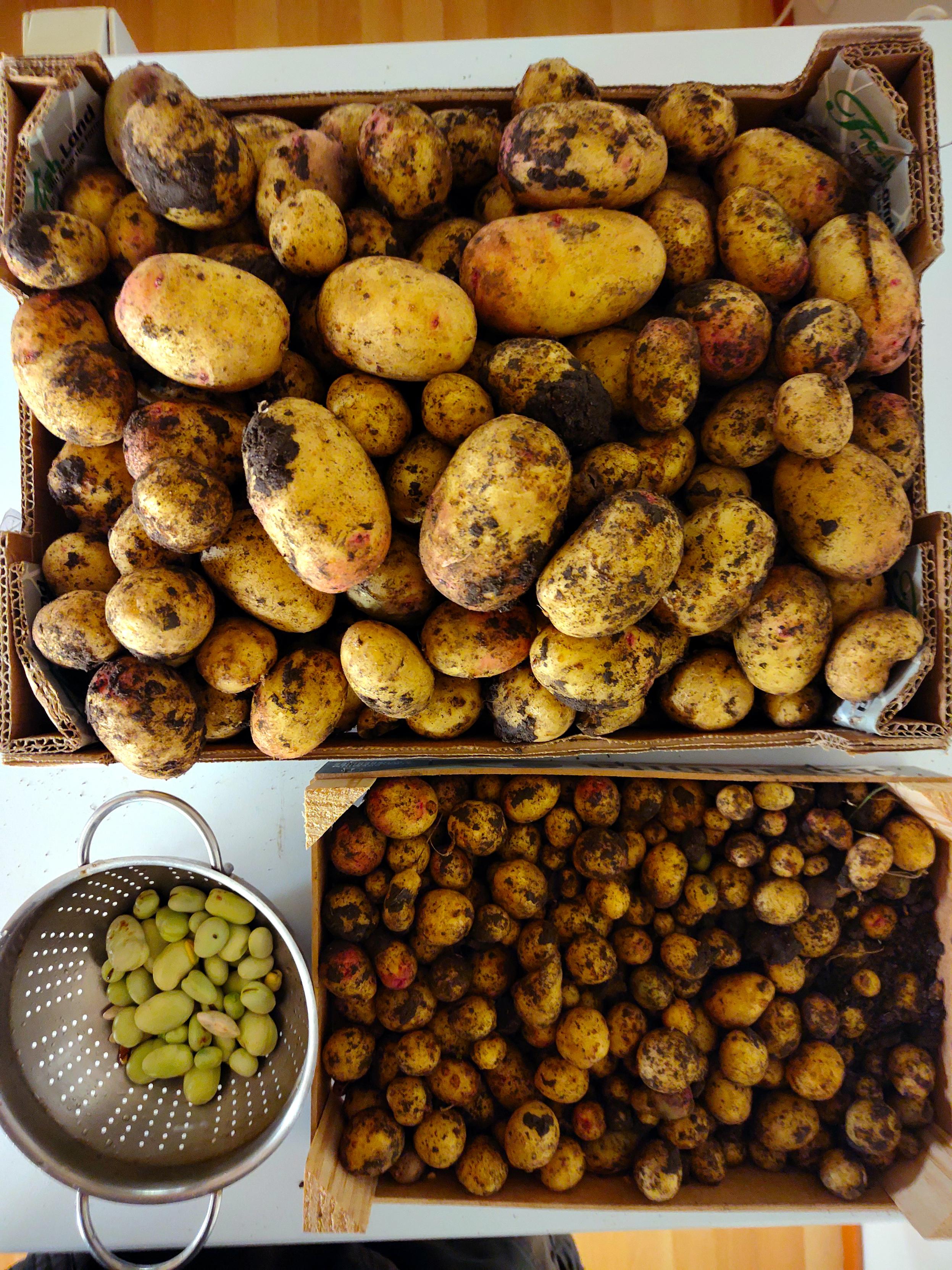 Die Ernte der Butternuss-Kürbis (Hunter F1) ist nun abgeschlossen. Eine einzelne Pflanze in einem 50 cm Topf hat zwei Kürbisse mit je 1,8 kg hervorgebracht. Dieser für britische Wetterbedingungen gezüchtete Butternuss-Kürbis wächst auch in Finnland – teilweise mit einem Vlies abgedeckt. Der Sommer war wettertechnisch nicht ideal für den Anbau; es gab ungewöhnlich kalte und ungewöhnlich heiße Phasen. Beim ersten Versuch wusste ich nicht richtig, wie ich das Wachstum kontrollieren und die Reifung rechtzeitig beschleunigen sollte, daher wurden sie etwas zu groß. Vor drei Wochen habe ich das Düngen eingestellt, vor zwei Wochen viele Blätter entfernt und fast vollständig das Gießen eingestellt. Ich lasse sie noch eine Weile auf der sonnigen Fensterbank nachreifen, falls die Sonne in dieser nebligen Zone diesen Herbst noch scheint.