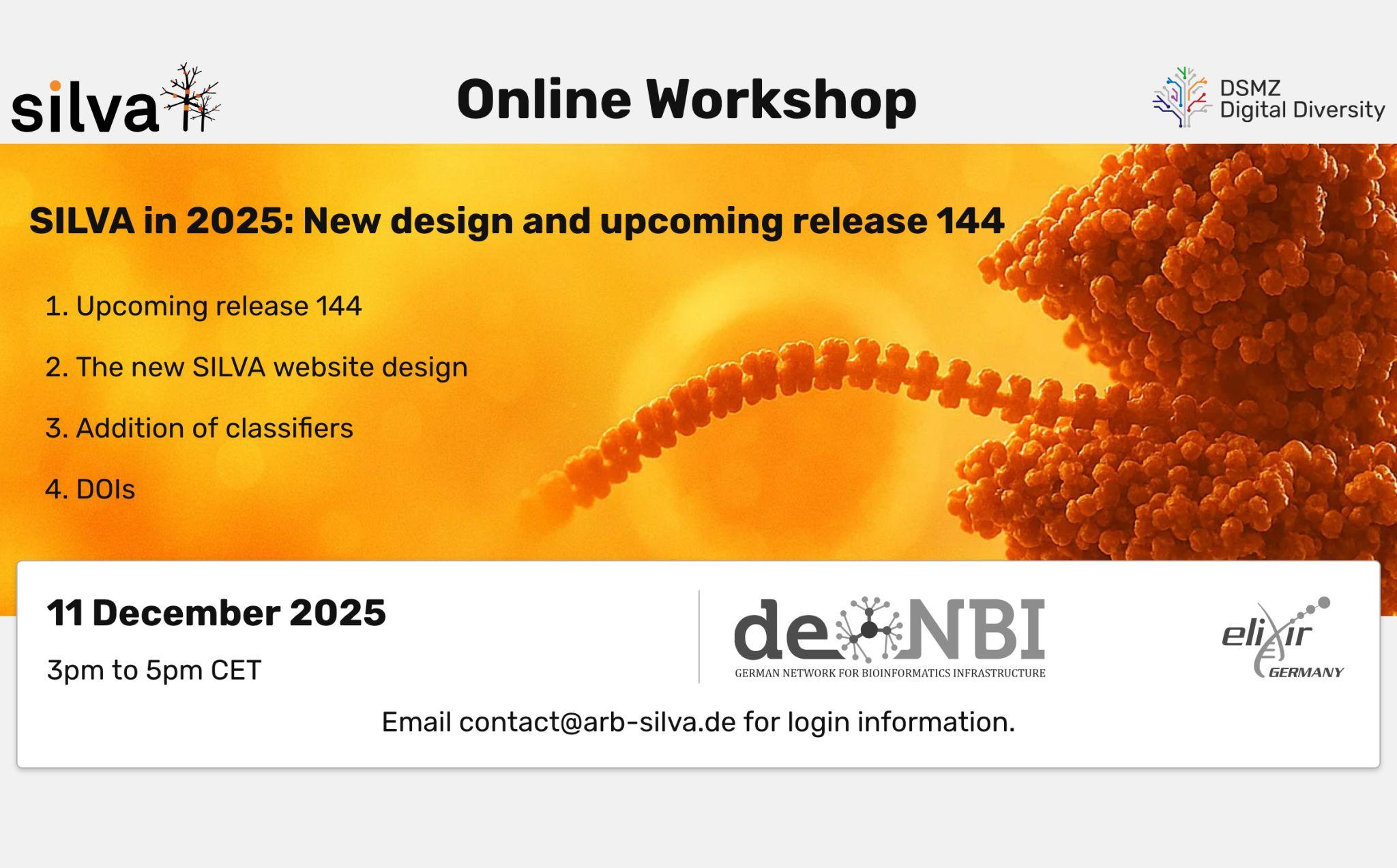 📣 Workshop announcement: This year's SILVA 🧬 online workshop will take place on 🗓️ 11th December, at 3pm CET.