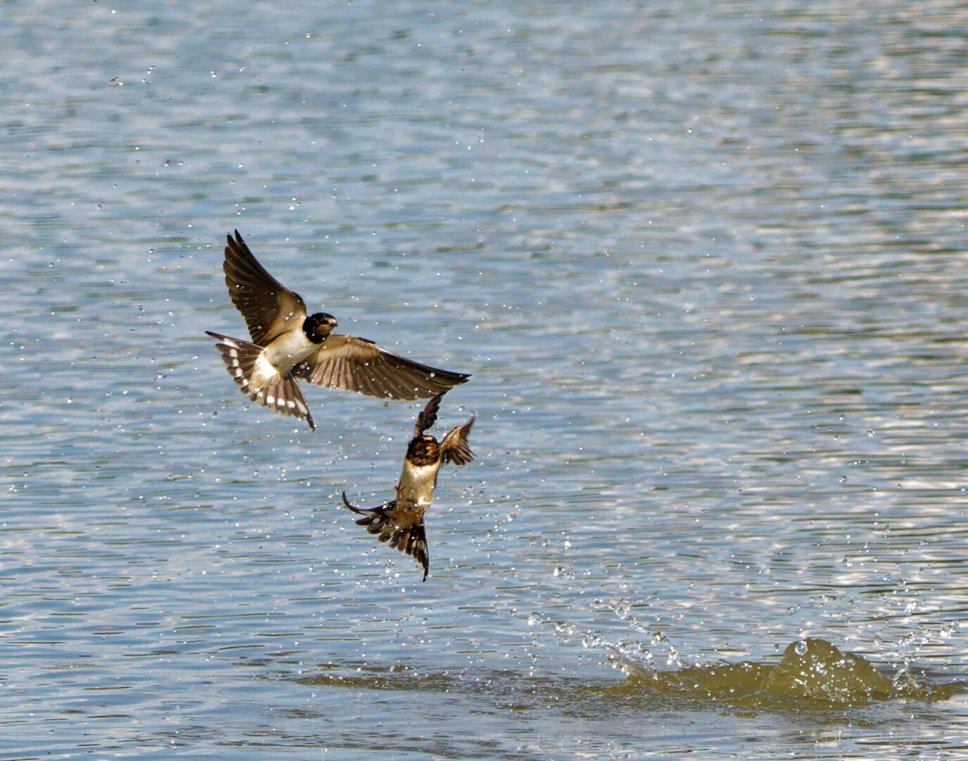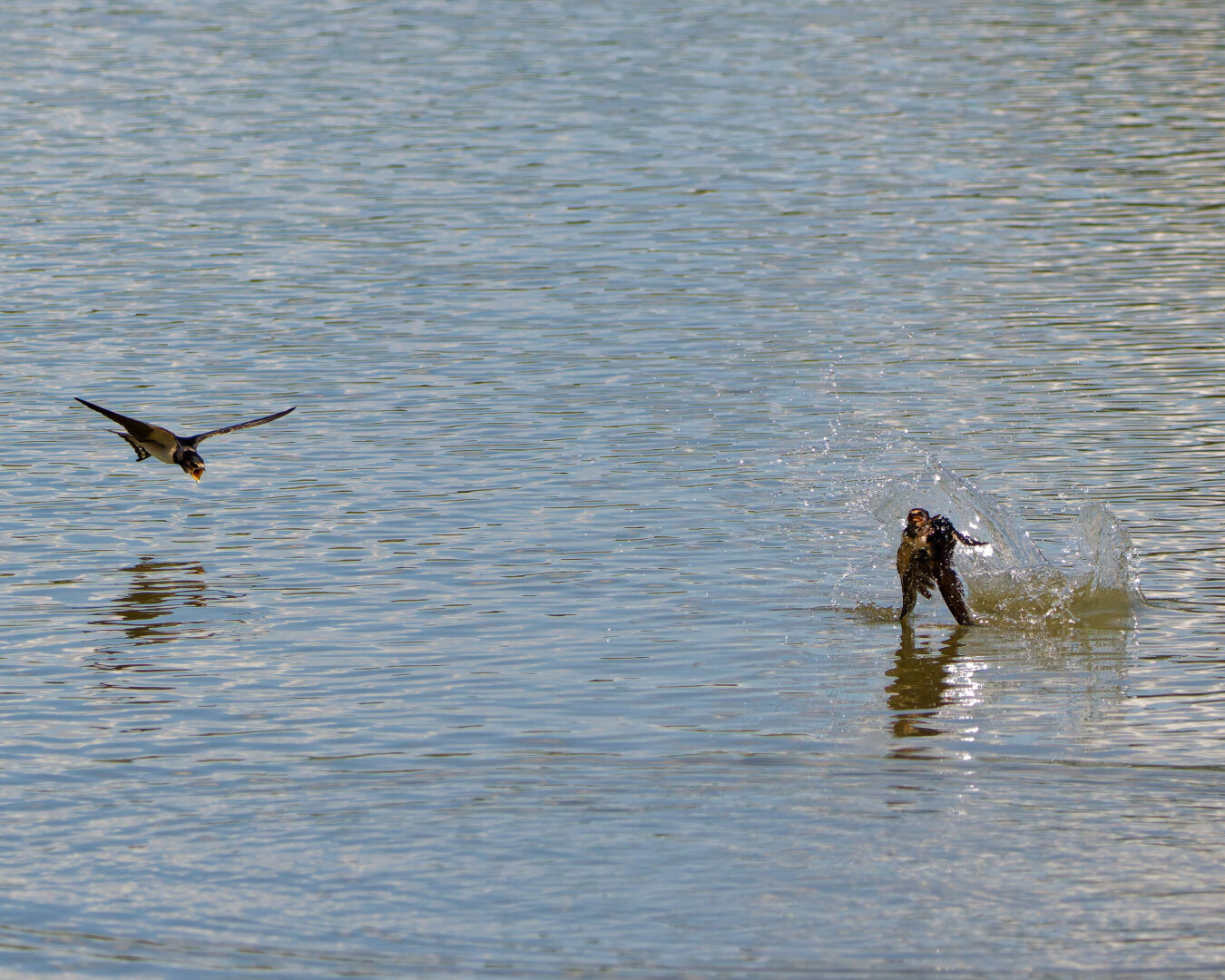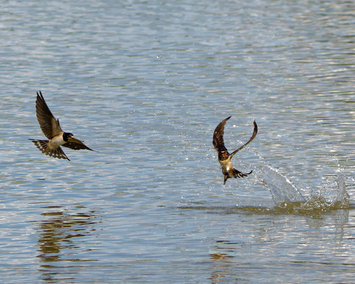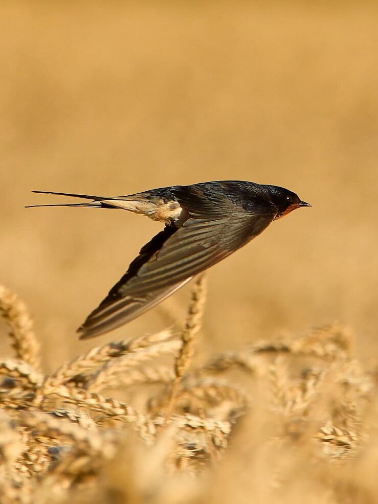 Rauchschwalben in der Morgensonne.