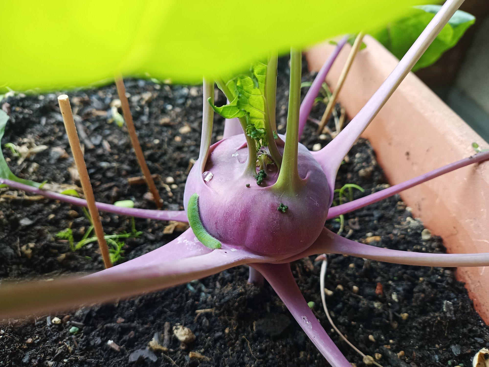 Da sind sie wieder. Hab schon gewartet, wann die #Raupen auftauchen. Den #Kohlweißling hatte ich bereits vor Wochen beobachten können. Eigentlich soll der ja an die #Kapuzinerkresse gehen, aber er hält sich nicht dran.