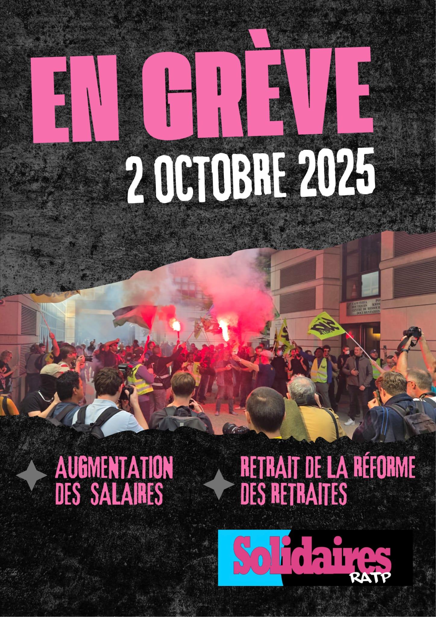 En #Greve #Manifestation le #2Octobre2025 on exige le retrait de la #RéformeDesRetraites des augmentations de #Salaire et un meilleur #PartageDesRichesses