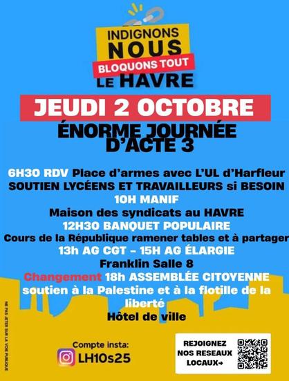 Après la manif et les blocages bien suivis le 18s25 à presque 4000 personnes #mouvement #indignonsnous #bloquonstout #lehavre #lh #normandie #2o25 #reunion #agcitoyenne #agsouveraine #agelargie #toursdeparole #auditionscitoyennes #autogestion #squarestroch #hdv #manifestation #syndicats #banquetcitoyen