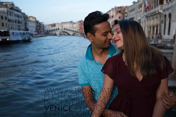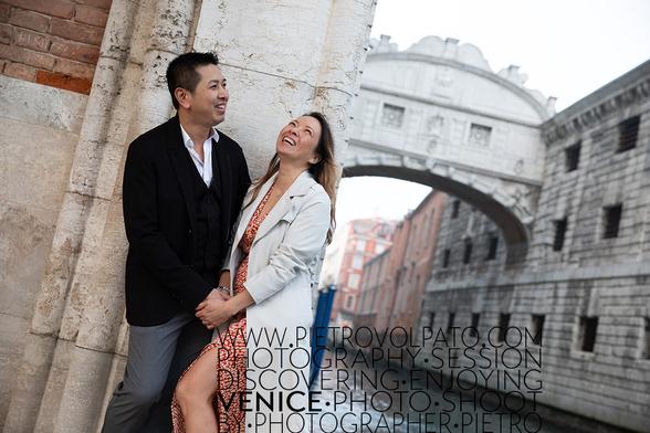 A couple having fun near the Bridge of Sighs. Venice is so romantic and fun. Let a photographer capture the magic of those moments.