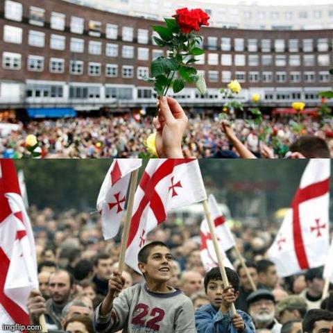 "Putin likewise used homophobic terms to dismiss #Georgia’s #RoseRevolution in 2003, responding to a reporter’s question by saying: 'A rose revolution — next they’ll come up with a light blue one.' In Russian, 'light blue' or goluboi is slang for “gay male.”