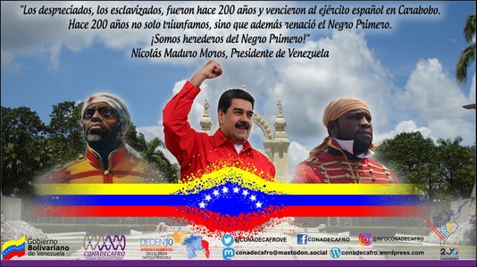 #RumboAlBicentenario. "Los despreciados, los esclavizados, fueron hace 200 años y vencieron al ejército español en Carabobo. Hace 200 años no solo triunfamos, sino que además renació el Negro Primero. ¡Somos herederos del Negro Primero!"