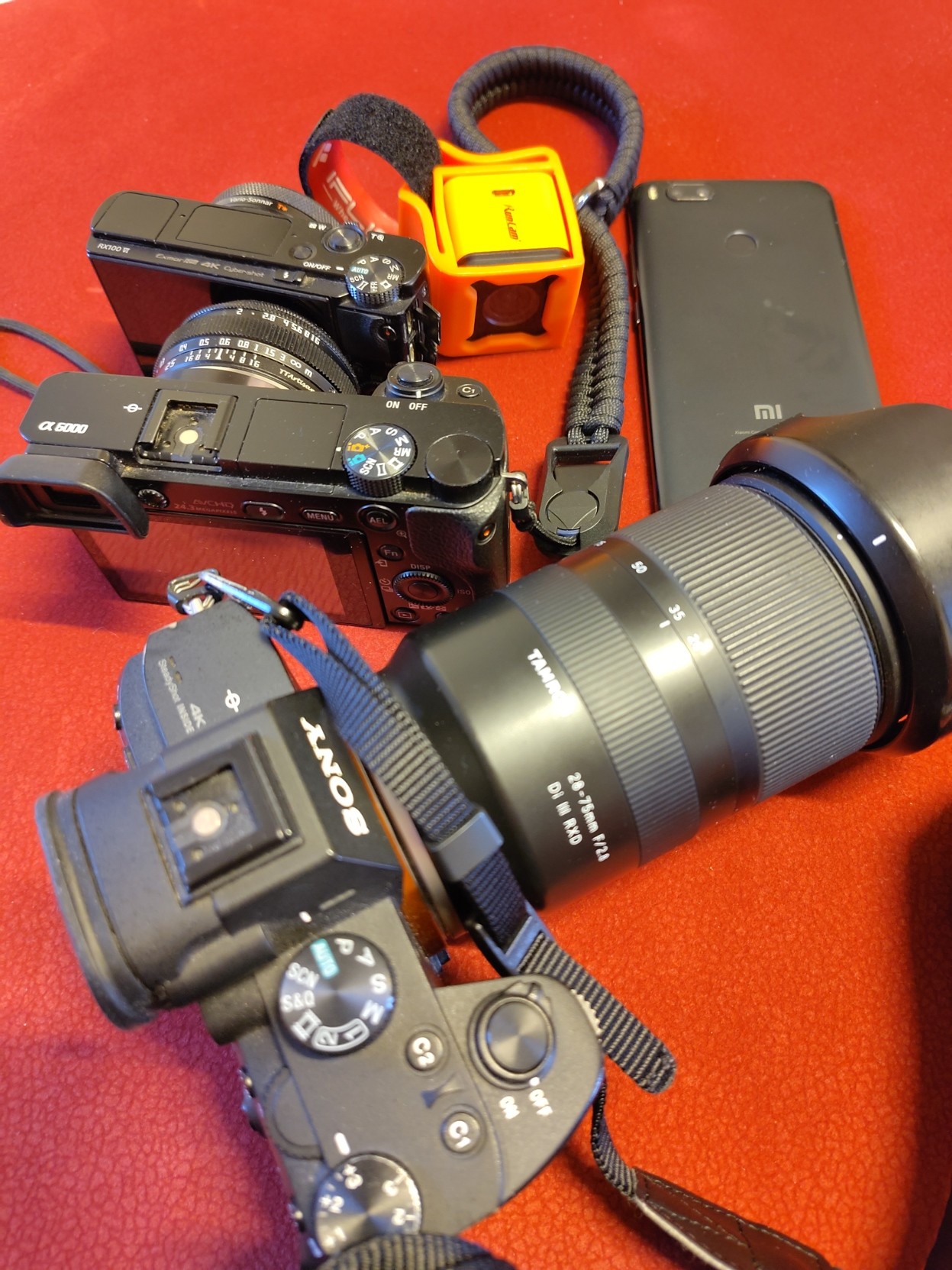 Ebenfalls im Bild: #RX100VI (wirklich kompakt), Xiaomi #MiA1 (generisches Smartphone) und #RunCam3 (Platzhalter für kompakte Actioncams)