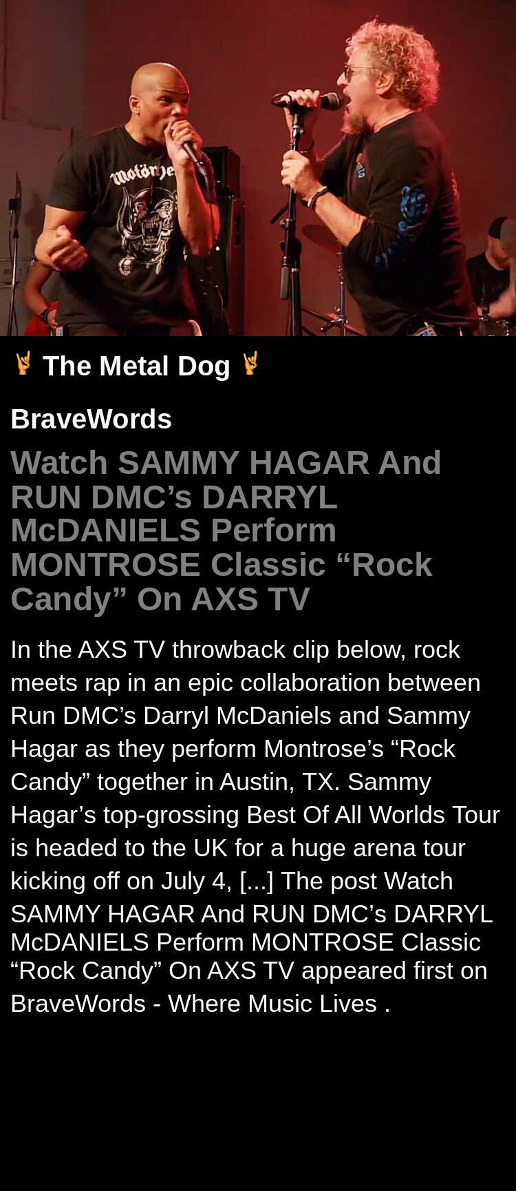 #SAMMYHAGAR #RUNDMC #Watch #tour #EP #BraveWords #metal #music