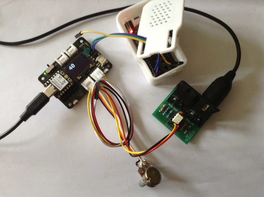 For completeness the same code can be used with the XIAO ESP32-C3 and serial MIDI, see the photo at the start of this blog.