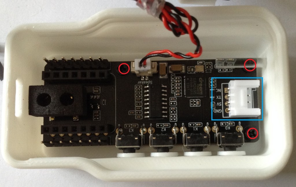 First, of course, there is no access to this connector through the case. My initial thought was to simply remove the PCB from the case and use it as a stand-alone board. On initial inspection it seemed that there were two screws holding it down. Not so, a more thorough inspection (after remove the two screws and still not being able to remove it), revealed a third screw underneath the “light pipe” for the LEDs.