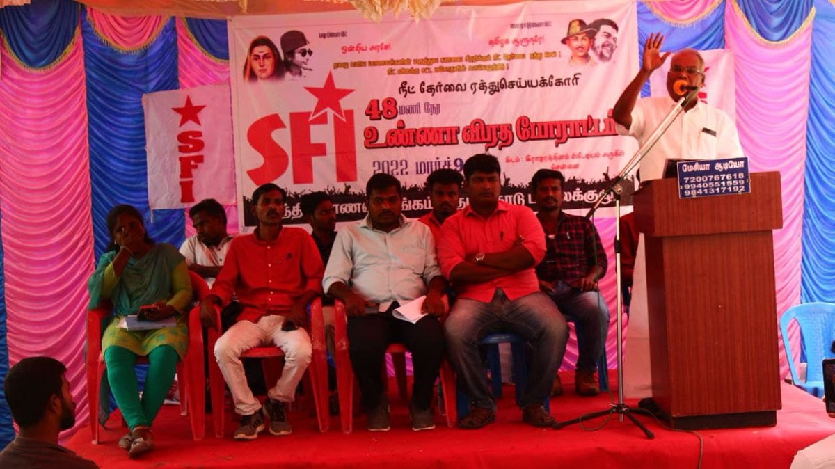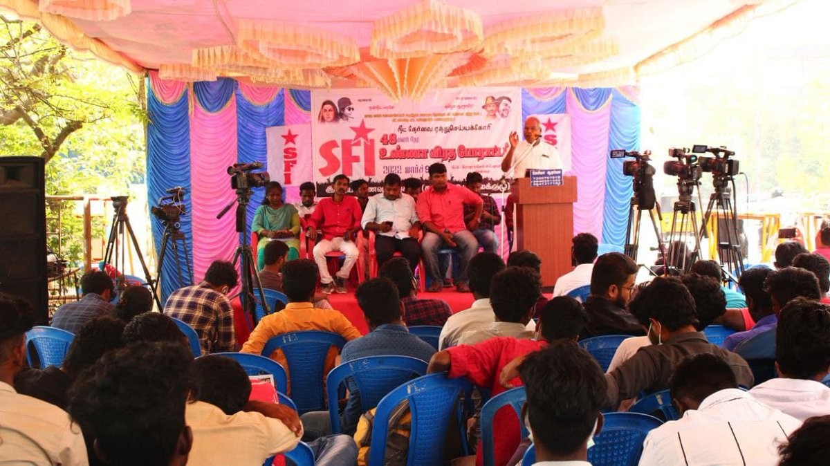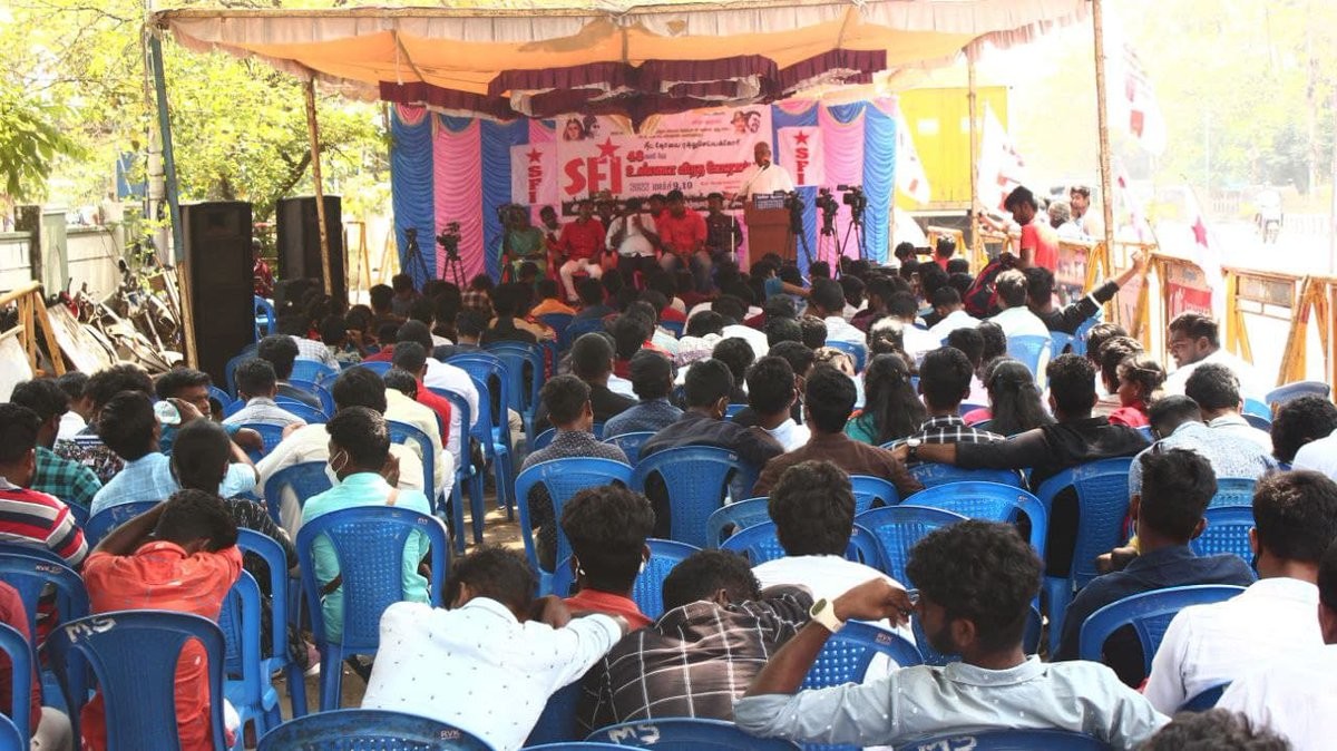 SFI activists protest at Kerala University against interim VC Mohanan Kunnummal and casteist remarks by Sanskrit Department dean. Police use water cannons to control demonstrators. https://english.mathrubhumi.com/news/kerala/kerala-university-tense-as-sfi-protests-casteism-blocks-vc-over-sangh-parivar-agenda-azhvsqvb?utm_source=dlvr.it&utm_medium=mastodon #KeralaUniversity #SFIProtest #CasteismAllegations #KeralaNews