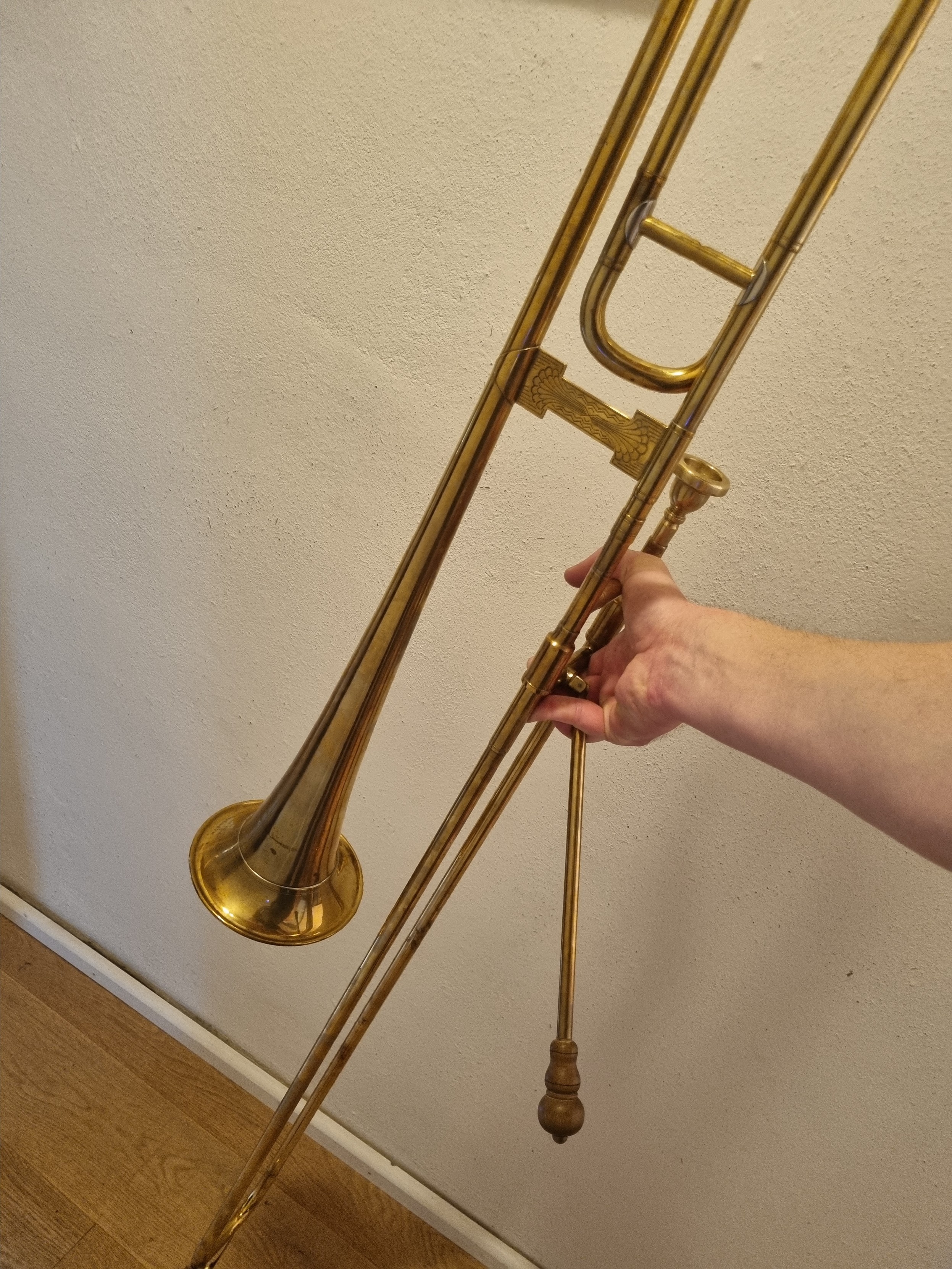 Fit machen auf dem Nachbau einer Bassposaune in Es aus dem 16. Jahrhundert. đ