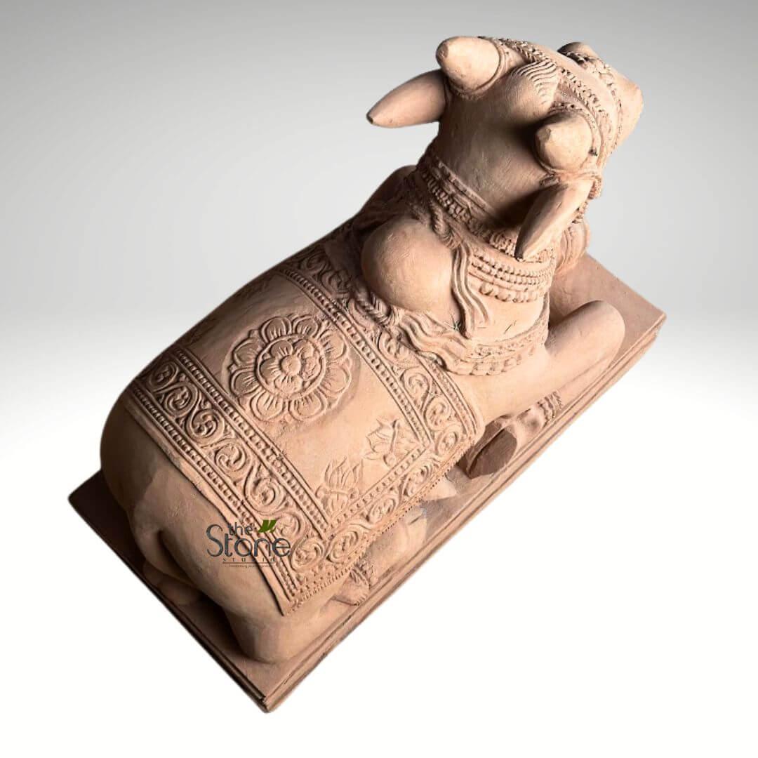 This 2ft Nandi statue, carved in warm sandstone, captures the quiet strength and sacred energy of Lord Shiva’s vahana. Every detail — from the calm gaze to the ornate saddle — reflects centuries of temple tradition and artisan mastery.