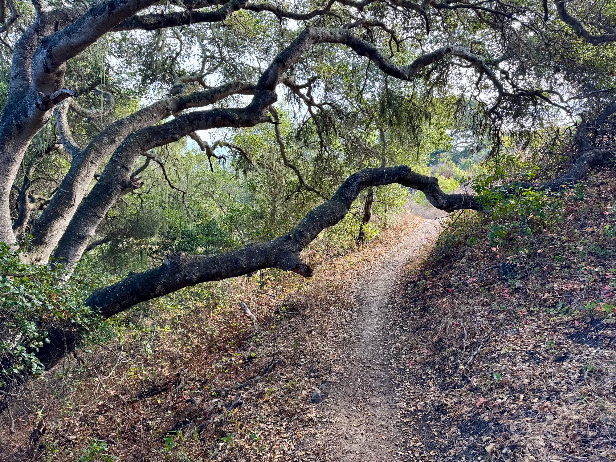 #ForestFriday #Scape Twisted oak trees and lace lichen envelop the hiking trail through the hills of San Luis Obispo. #EastCoastKin #Hiking #LandscapePhotography