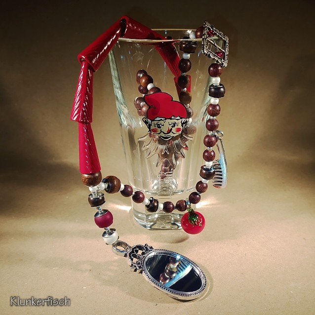 #Halskette #Schneewittchen #Zwerge #Spiegel #Apfel #Kamm #Gürtel #Märchen #Schmuck #handmade #Klunkerfisch