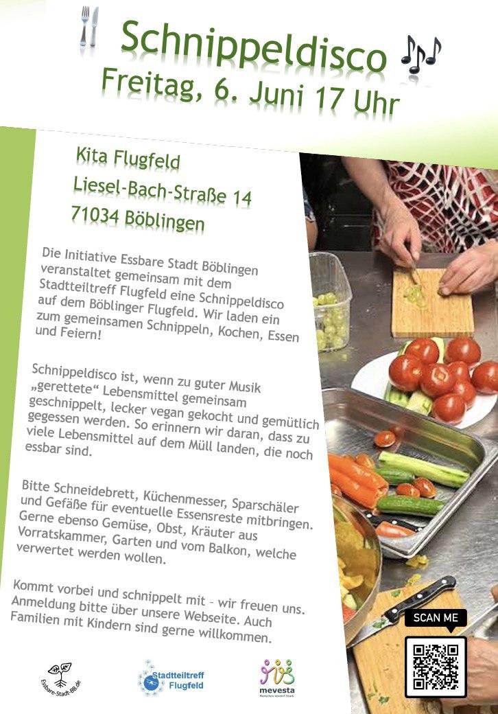 Am Freitag nächster Woche, dem 6.6. um 17 Uhr, findet endlich wieder unsere legendäre #Schnippeldisco in #Böblingen statt. Details sind auf dem Flyer und auf unserer Webseite.