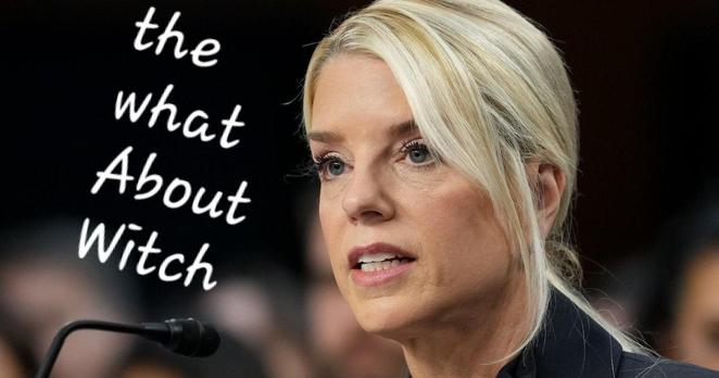 WP AI image of Pam Bondi, deflecting questions, refusing to answer Senators.