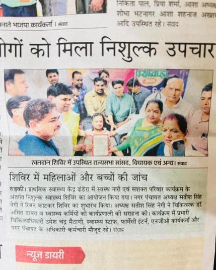 рдЗрд╕ рдЕрд╡рд╕рд░ рдкрд░ рдмрдбрд╝реА рд╕рдВрдЦреНрдпрд╛ рдореЗрдВ рд▓реЛрдЧреЛрдВ рдиреЗ рдЙрддреНрд╕рд╛рд╣рдкреВрд░реНрд╡рдХ рд░рдХреНрддрджрд╛рди рдХрд░ рд░рд╛рд╖реНрдЯреНрд░рд╣рд┐рдд рдореЗрдВ рдпреЛрдЧрджрд╛рди рджрд┐рдпрд╛ред рд╕рдорд╛рдЬ рд╡ рдорд╛рдирд╡рддрд╛ рдХреЗ рд╕рдЪреНрдЪреЗ рд╕реЗрд╡рдХ рдХреЗ рд░реВрдк рдореЗрдВ рд░рдХреНрддрджрд╛рддрд╛рдУрдВ рдХрд╛ рдЙрддреНрд╕рд╛рд╣рд╡рд░реНрдзрди рдХрд┐рдпрд╛ред