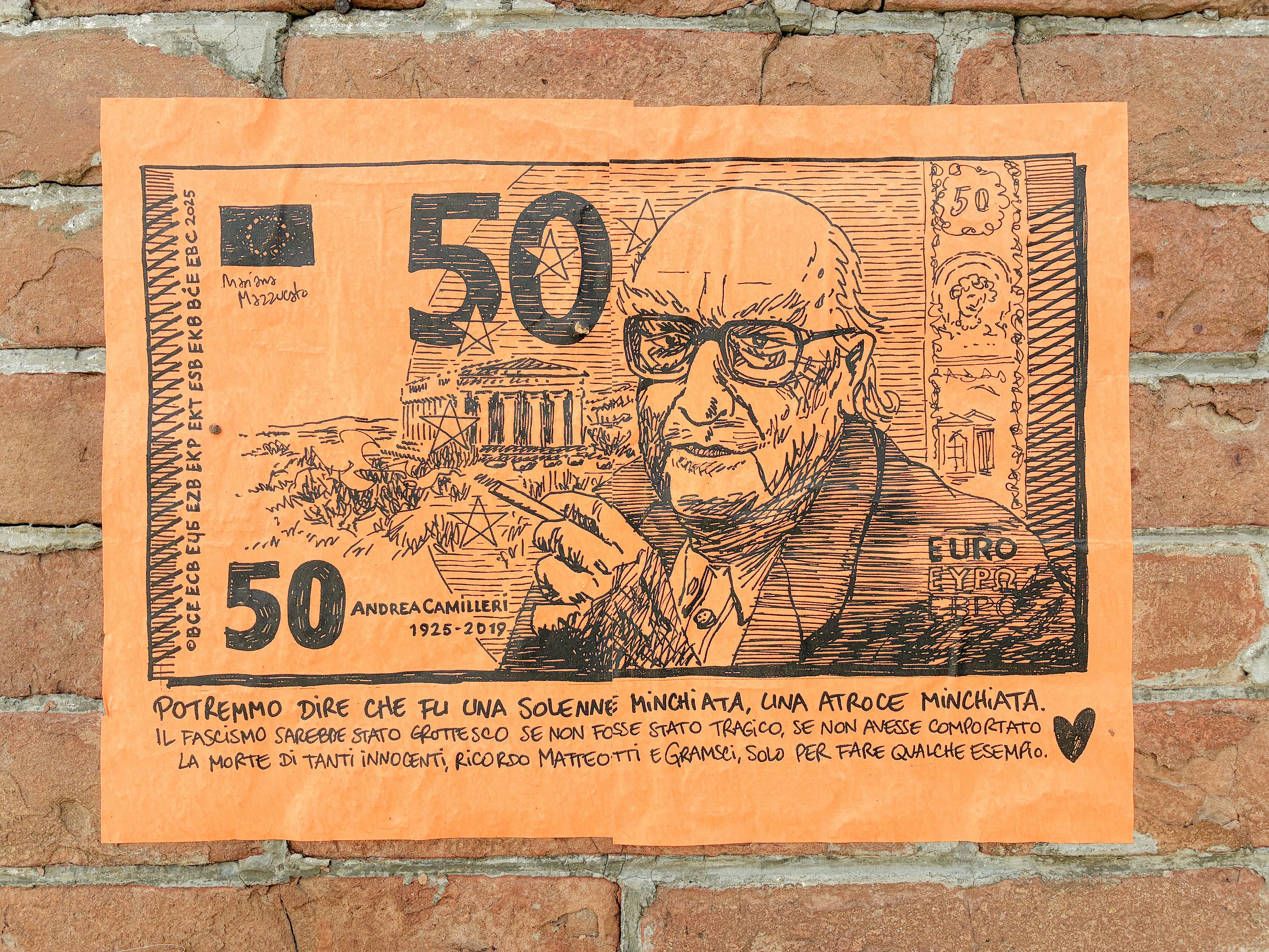 #AndreaCamilleri #Camilleri #Sicilia #Sicula #minchiata #LaCulturaMinchia #50euro #guerraculturale #streetart #pasteup