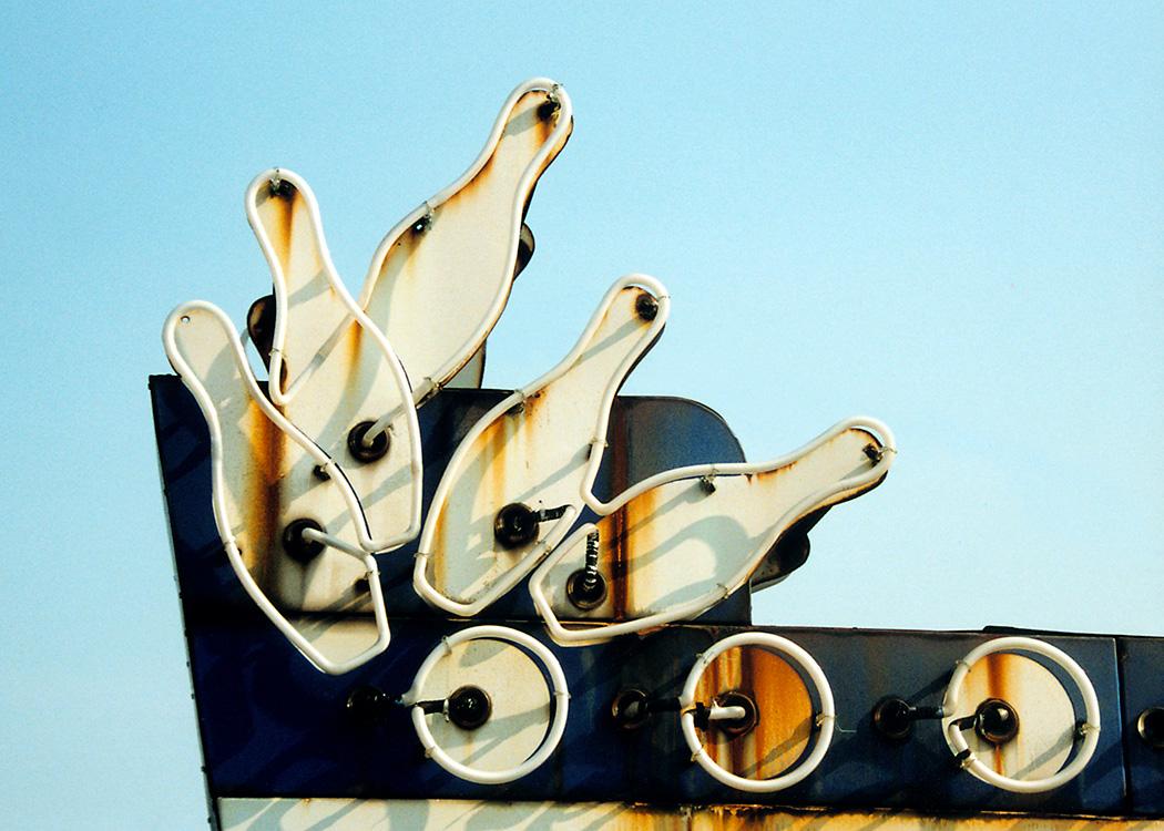 Detail of the sign for Panorama Lanes in Belleville, IL. #sign #signs #neon #neonSigns #bowling