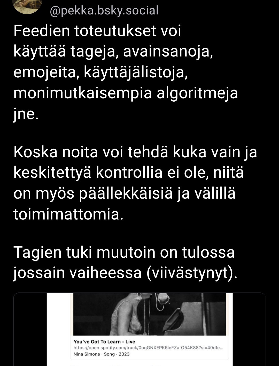 Mutta selittääkö se #BlueSky nyt tätä.