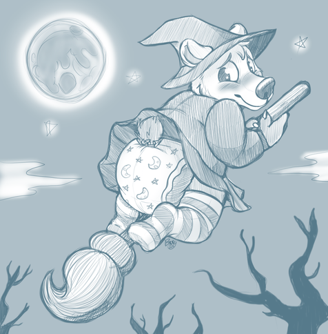 Huff! Short dresses and flying brooms make for a very blushy bear. I applied for the boys warlock academy ... how did I end up placed in the girls school for witches!!? This fabulous Sketchtober art by @bippy
