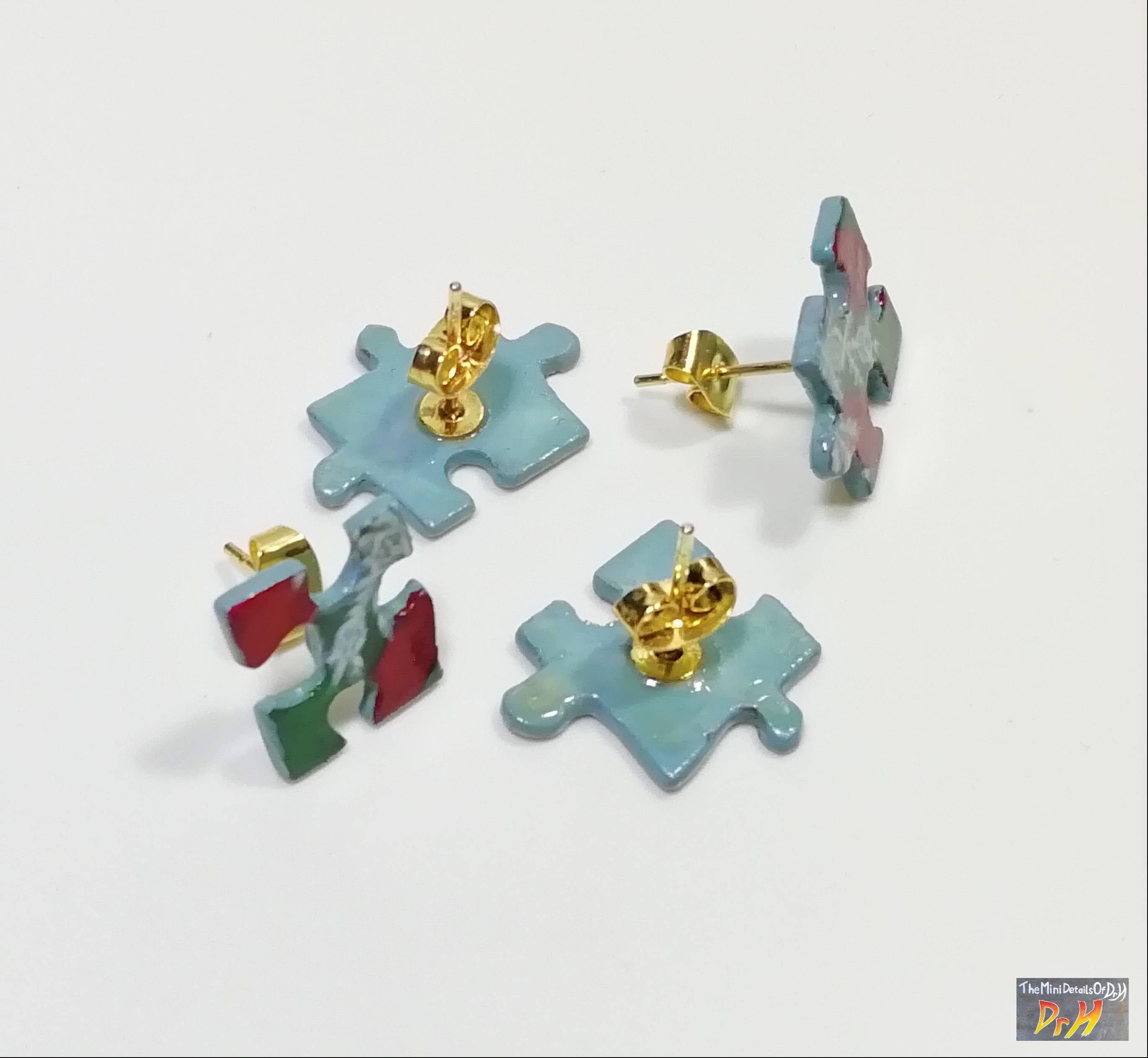 Some more views of these Christmas jigsaw earrings.