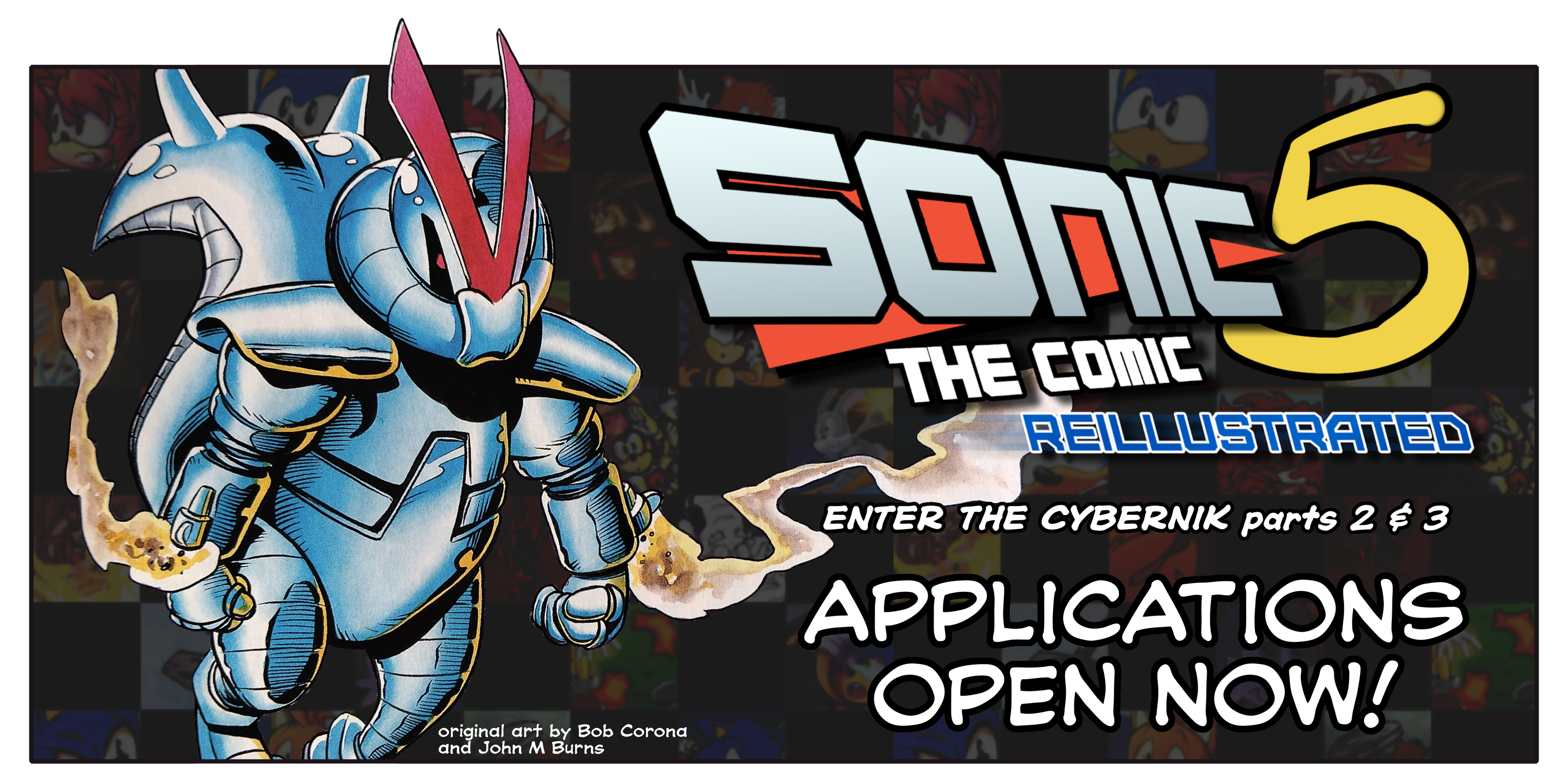 We're recreating classic stories from Sonic the Comic with one artist per panel in each issue, and this time we're recreating Lew Stringer's Enter the Cybernik parts 2 and 3 in a double issue!