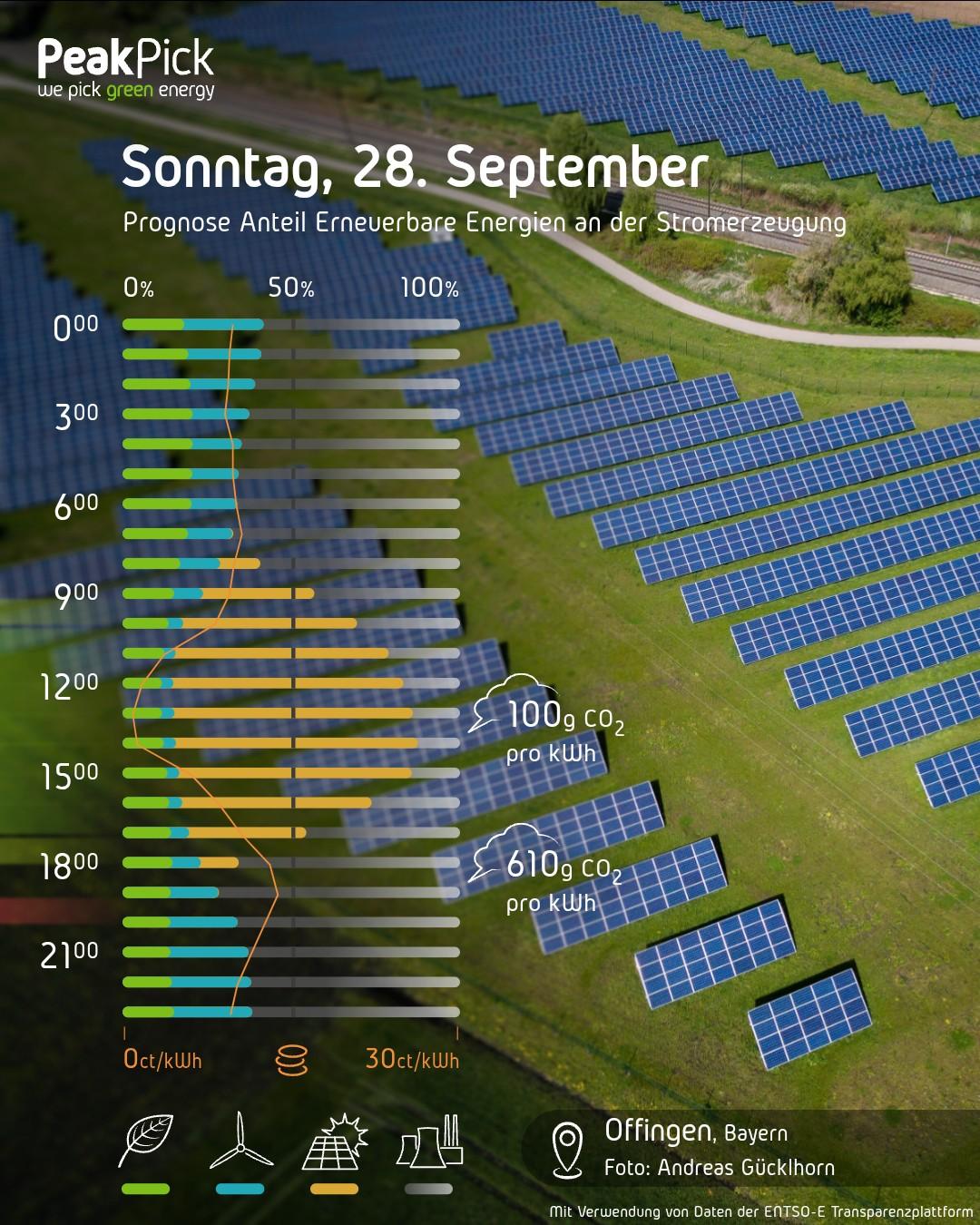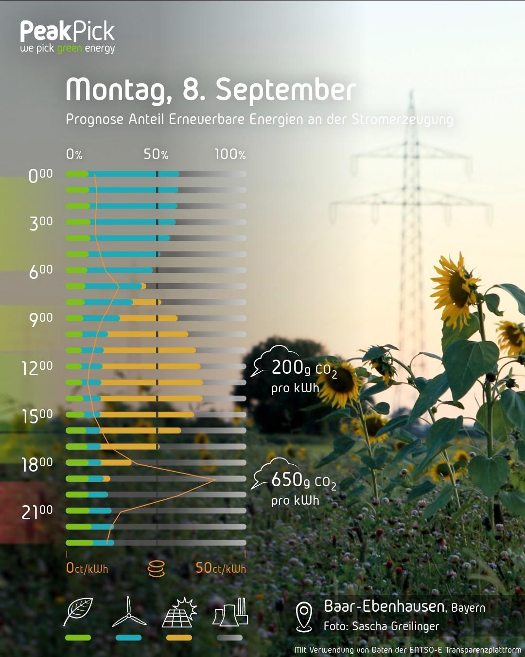 Über den 𝗠𝗼𝗻𝘁𝗮𝗴 hinweg wird die Sonne 𝟮𝟮 Prozent der Stromversorgung übernehmen: Über die Mittagszeit bis zu 𝟱𝟲%, in der Dämmerung und in der Nacht steht sie logischerweise nicht zur Verfügung.