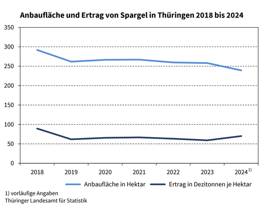 #Spargelernte in Thüringen leicht unterdurchschnittlich, siehe https://statistik.thueringen.de/presse/2025/pr_167_25.pdf