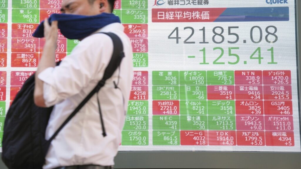 https://www.alojapan.com/1361163/asian-benchmarks-slip-after-us-stocks-sink-and-japan-faces-political-uncertainty-3/ Asian benchmarks slip after US stocks sink and Japan faces political uncertainty #Amazon.com #Apple #AsiaPacific #business #DonaldTrump #EconomicPolicy #FinancialMarkets #GeneralNews #HiroshiMoriyama #HongKong #Inc. #Japan #JapanGovernment #JapanNews #JapanTopics #news #NVIDIACorp #ScottWren #shanghai #ShigeruIshiba #StephenInnes #StocksAndBonds #sydney #Tokyo #U.s.News #WellsFargoCo. #WorldNews TOKYO (AP) — Asian shares mostly declined Wedne