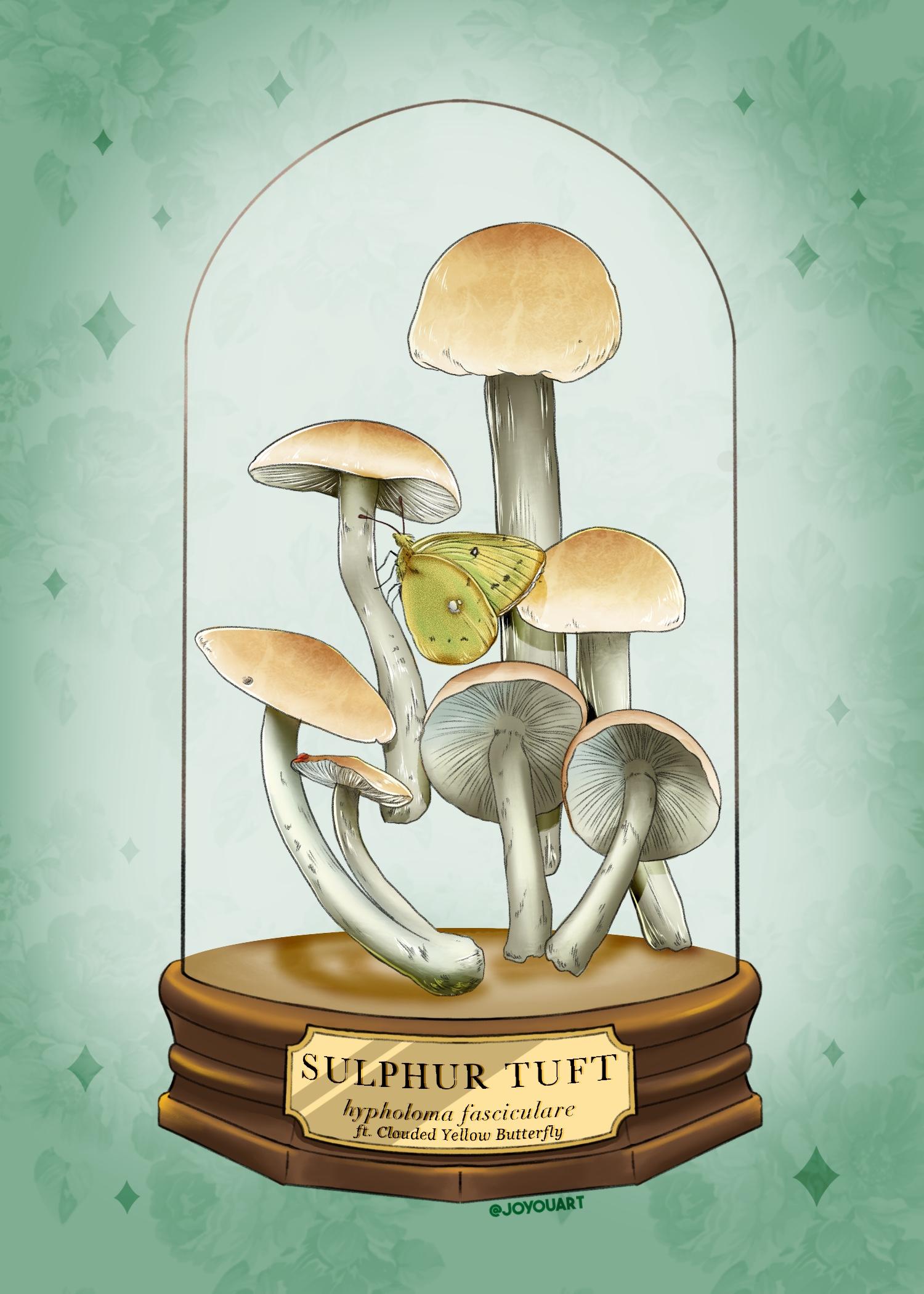 #mycology #fungus #fungi #foraging #mushrooms #mushroomart #terrarium #sulphurtuft #butterfly #witchtober #witchtober2025 #moth
