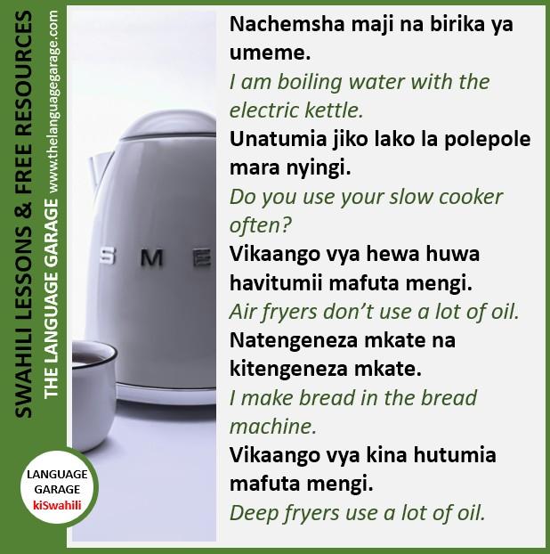 Nachemsha maji na birika ya umeme. I am boiling water with the electric kettle. #Swahili vocabulary for #cooking. #LearnSwahili #languages. Click to learn more. https://thelanguagegarage.com/cooking-in-swahili/