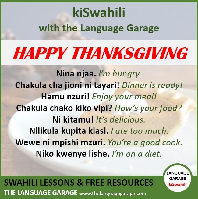 Nilikula kupita kiasi. I ate too much. Happy #Thanksgiving from the Language Garage! Learn #Swahili #languages. https://thelanguagegarage.com/choose-your-language/swahili/