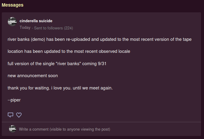 important update this mornin' over on the cinderella suicide bandcamp page: