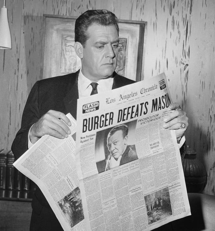 Every time I hear the theme song, I'm back in Nana's living room on a Saturday night in the 1960s. "Perry Mason" is a favorite TV show of 2/3rds of our household, and Raymond Burr has now become a gay icon. Who'd 'a thunk it?