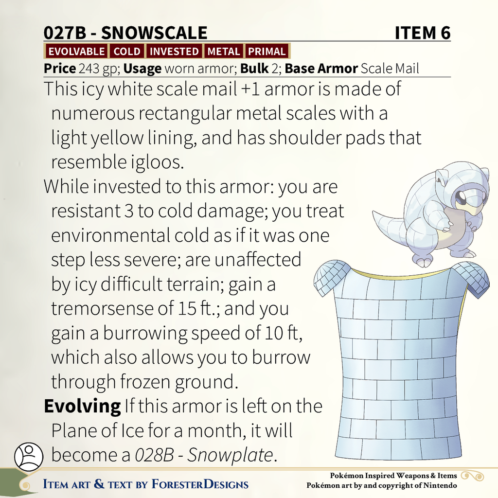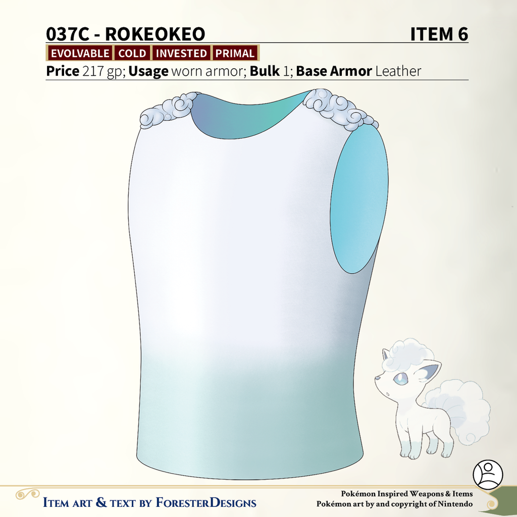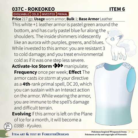 A #PF2e conversion of my older #Pokemon #MagicItems, with some Alolan #Vulpix #armor to summon a storm!