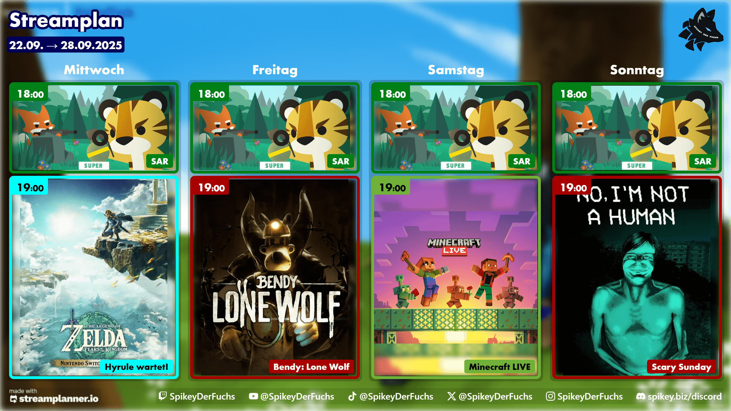 Diese Woche mit Super Animal Royale, Minecraft Live-Co-Stream, The Legend of Zelda: Tears of the Kingdom, Bendy: Lone Wolf (100% Run!) und No, I'm not a Human.