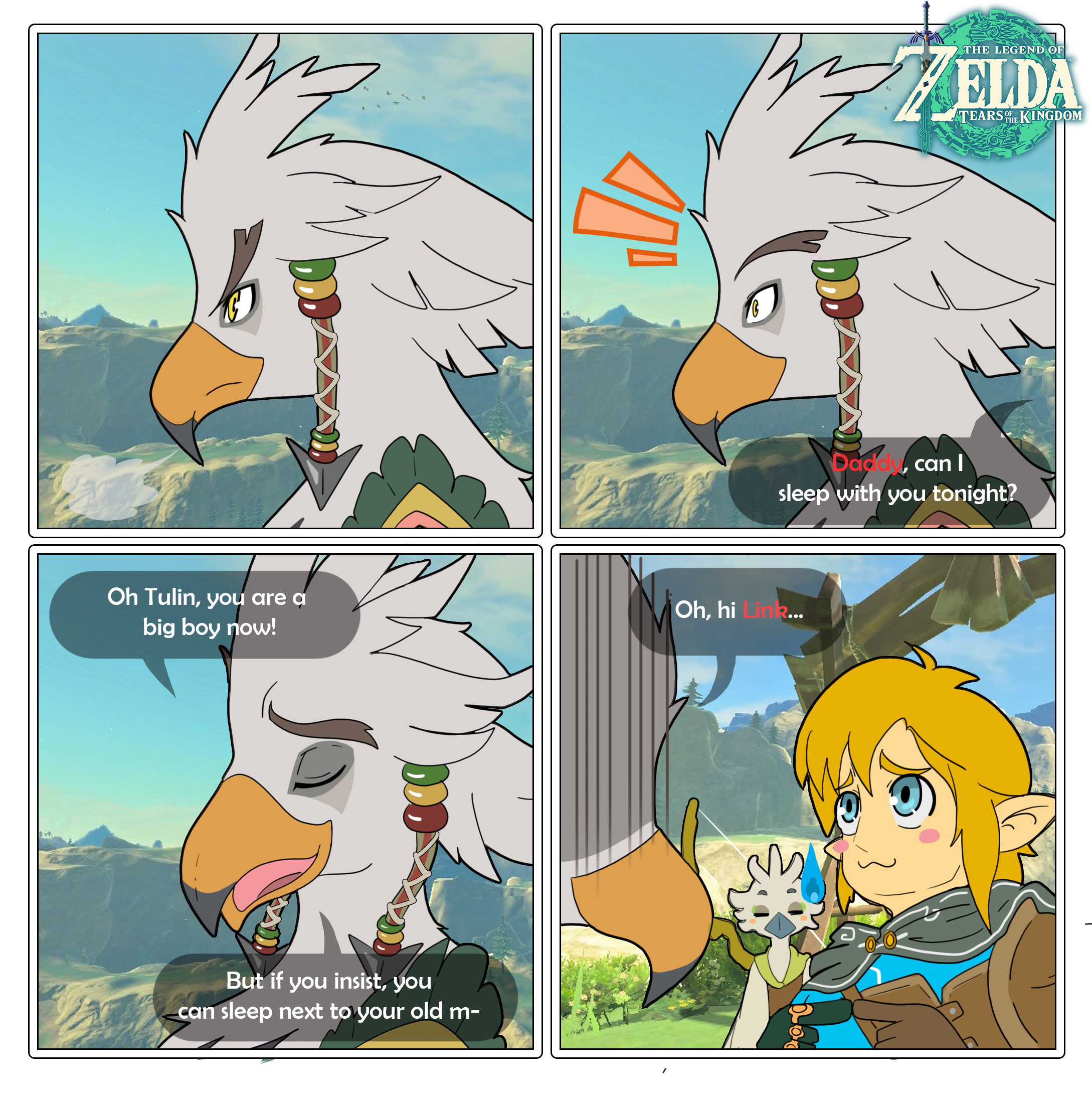 Teba is so snuggable, don't you think? Link just had to take Tulin's place. Which Rito bird is your favourite?