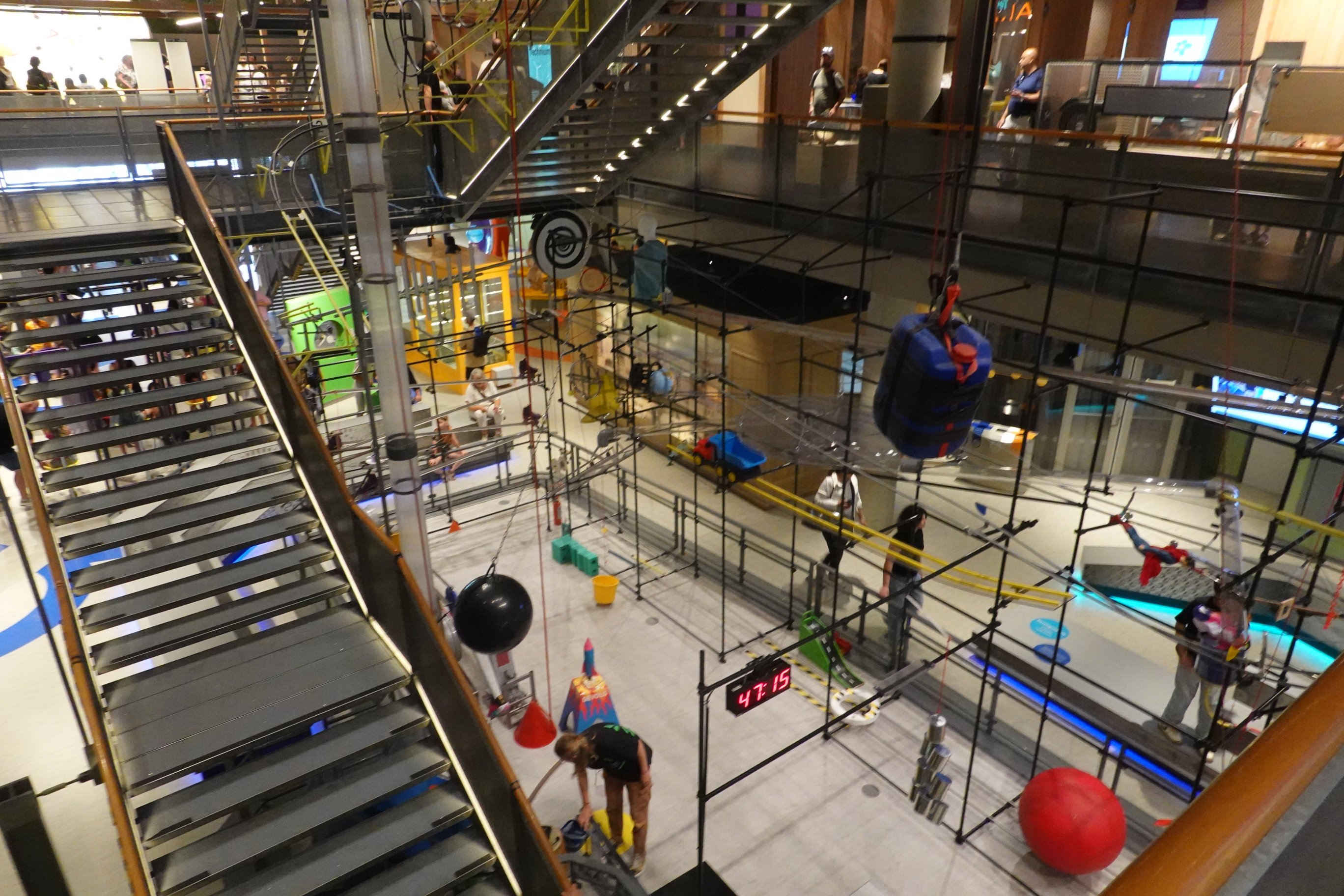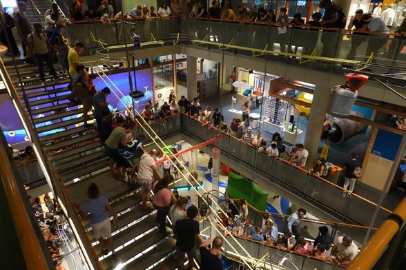 Halbstündige Vorführungen komplexer Kettenreaktionen im zentralen Treppenhaus des #Technikmuseum #Nemo in #Amsterdam.