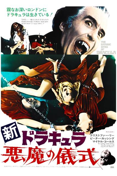 Posters for “The Satanic Rites of Dracula” AKA “Dracula Is Alive and Well and Living in London” AKA “Count Dracula and his Vampire Bride” AKA “Dracula Is Dead... and Well and Living in London” AKA “Dracula and His Brides” AKA “Rites of Dracula” from The United Kingdom, Japan, Germany and Italy