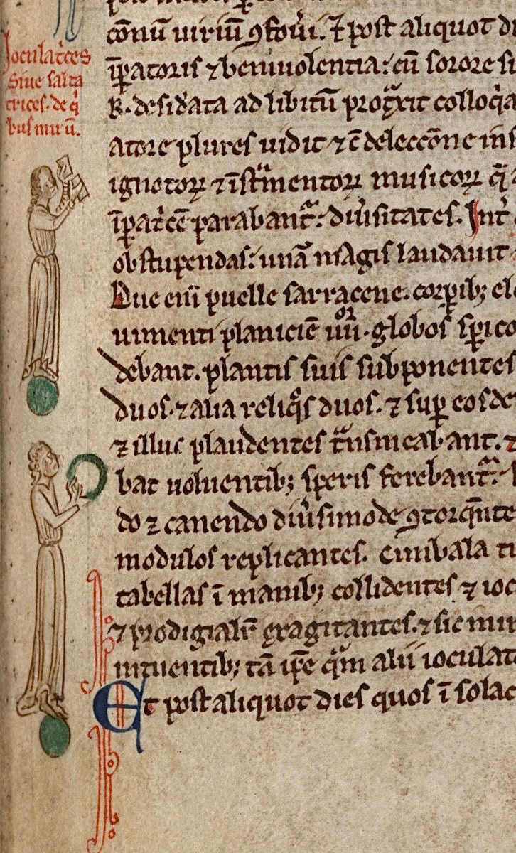 Bring on the entertainment! #TheWeekend Cambridge, Corpus Christi College, MS 016II; Matthew Paris OSB, Chronica maiora II; 13th century; England; f.149r @parkerlibcccc.bsky.social @corpuscambridge.bsky.social