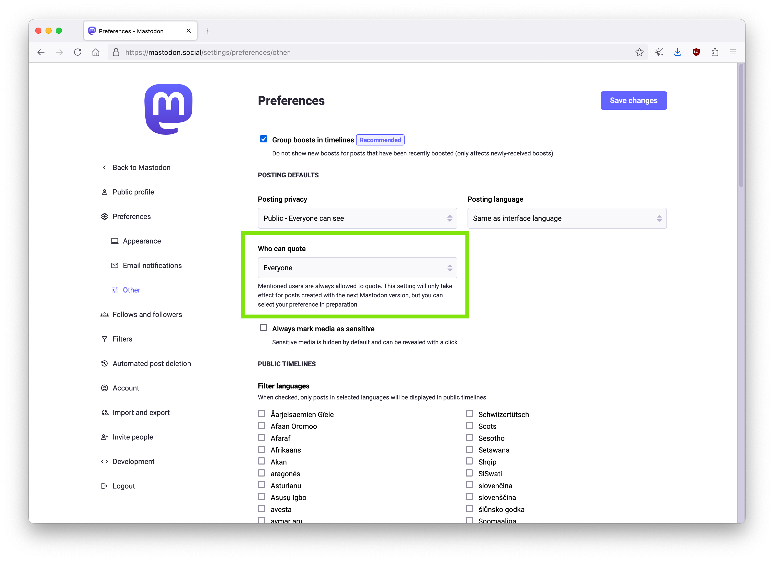 Why? If you post on more sensitive/personal topics, you might want to limit visibility to your followers only. Know that your posts will not be "boostable," however. You can change this per post as well.
