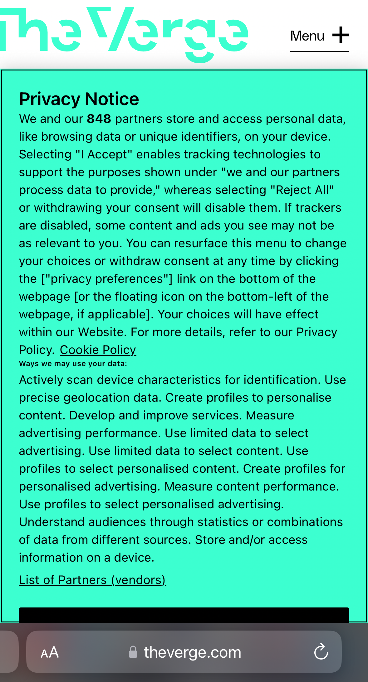 My editor at AARP asked if I could write an explainer about those dialogs you see on so many pages that suggest, ask, implore or assume that you’re okay with the site–and, in most cases, advertising networks–writing information about your visit to small text files saved on your device. After talking to numerous experts, I continue to think that your best response to those dialogs, should you not want to be tracked by advertisers, is to use a browser like Apple’s Safari, Microsoft’s Edge and Mozilla’s Firefox that will block ad-network trackers by default.